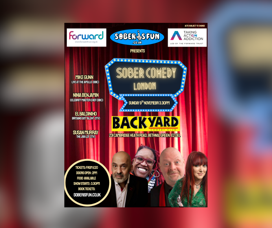 Having just launched our new Addiction Awareness Week 2025 campaign (23-30 November), we’re excited to host our second sober comedy night on Sunday, 9 November at the legendary Backyard Comedy Club.