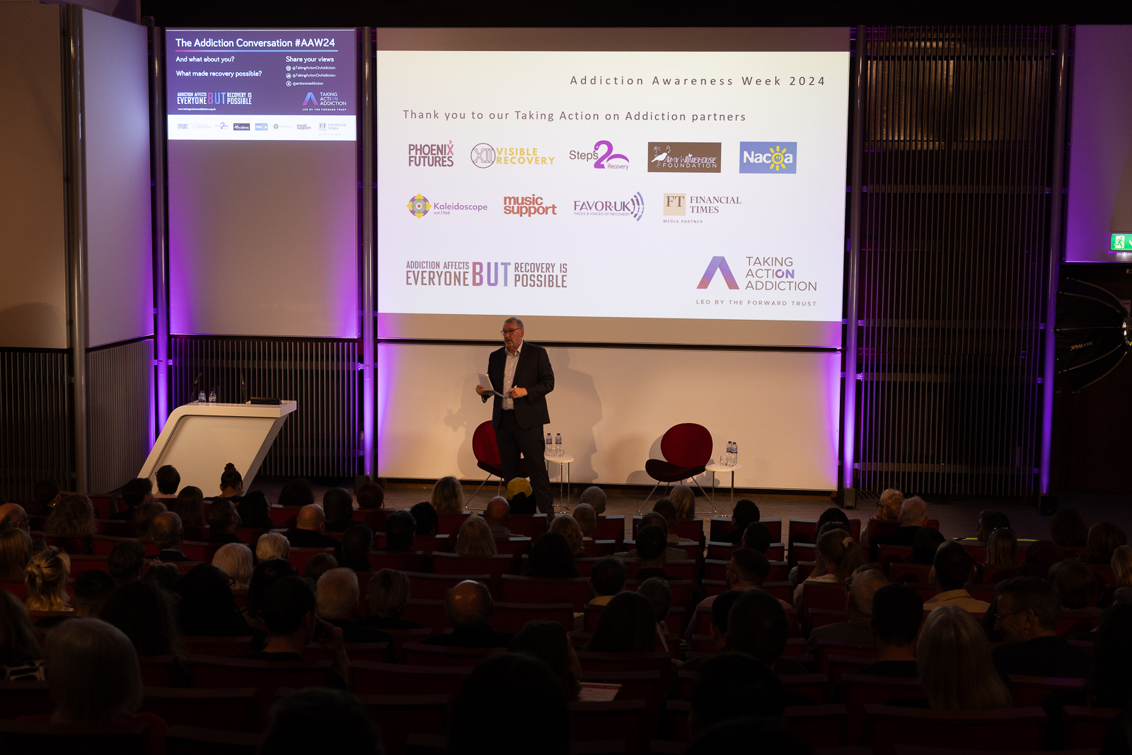 Sponsored by The Financial Times, this invite-only event included a varied audience of policymakers, public figures, media and people from The Forward Trust’s recovery community in support of this year’s campaign theme – Addiction Affects Everyone BUT Recovery Is Possible.