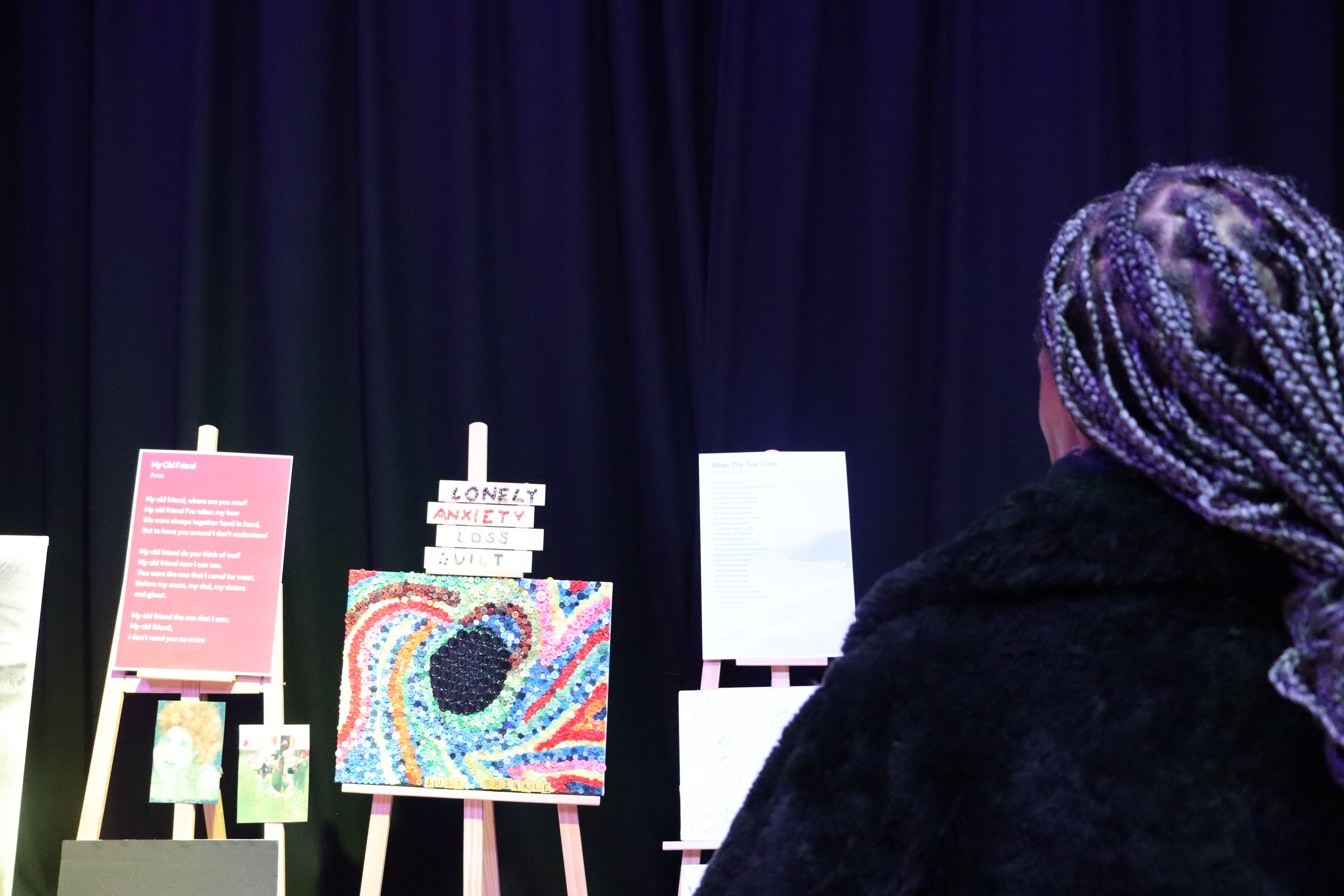 During the interval, guests explored a gallery of powerful artworks created through Forward’s recovery project in Medway. We were also proud to showcase the work of Oscar Wyndham Lewis whose immersive animation loop charted his recovery journey through a series of striking hand-painted images.
